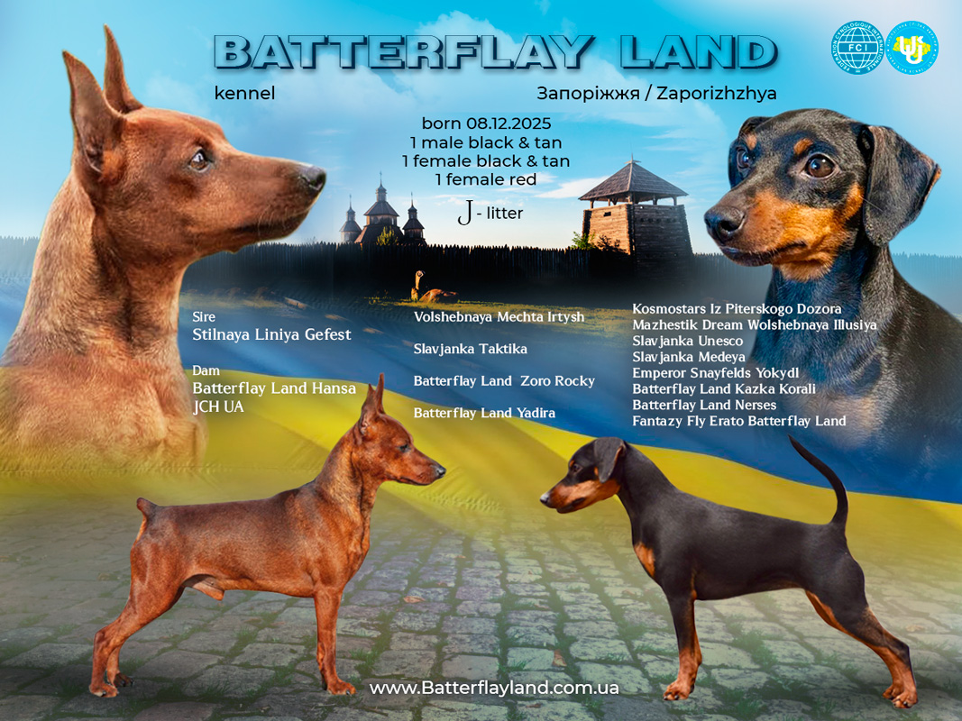 Ми раді вітати Вас на сторінках сайту розплідника "Batterflay Land", присвячених чудовій породі цвергпінчер. На них Ви зможете познайомитись із нашою колекцією представників породи, зі світом нашого розплідника, який команда плекає вже багато років, а також замовити собі цуценя.